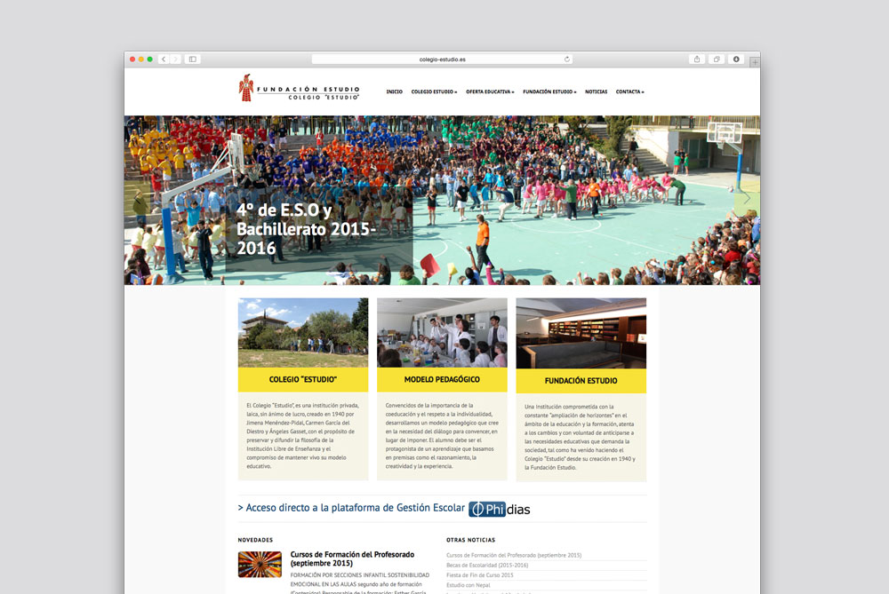 Diseño y desarrollo de la web de Colegio “Estudio” es una institución educativa privada, laica, y sin ánimo de lucro, creada en 1940 por Jimena Menéndez-Pidal, Carmen García del Diestro y Ángeles Gasset, con el propósito de  preservar y difundir la filosofía de la Institución Libre de Enseñanza.