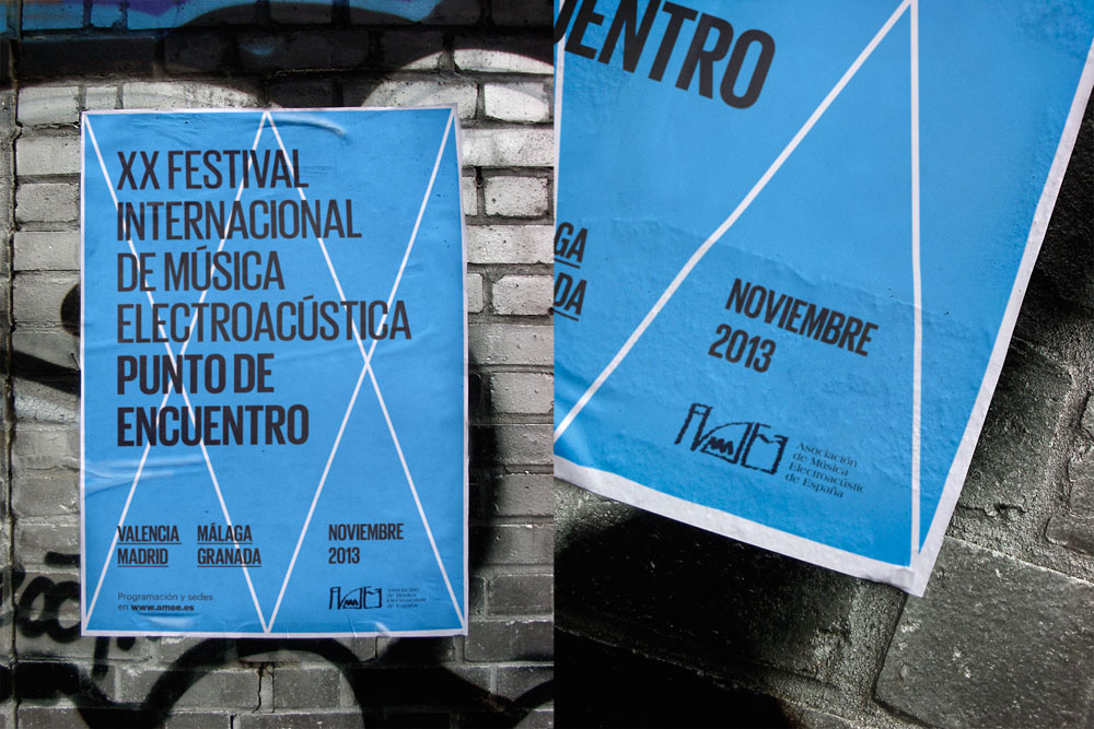 Diseño de programa y cartelería para el XX Festival Internacional de Música Electroacústica Punto de Encuentro, organizado por la AMEE (Asociación de Música Elecroacústica de España) y celebrado en noviembre de 2013 en diferentes ciudades.